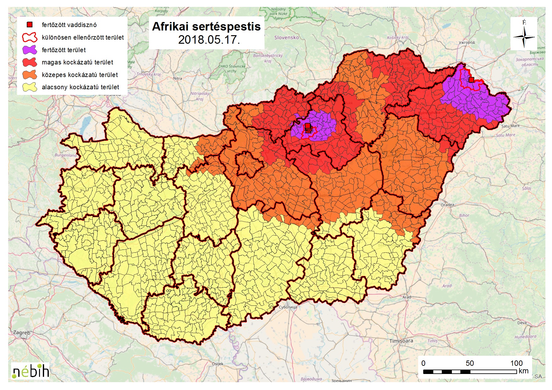 A NÉBIH az ASP magyarországi megjelenését követően rögtön tájékoztatta az Európai Bizottságot, hogy hol és mikor bukkant fel a vírus. Elsőként Heves megyében találtak fertőzött vaddisznót, ahova a kórokozó Ukrajnából emberi közvetítéssel került. Később Szabolcs-Szatmár Bereg megyében is elhullott vaddisznókban mutatták ki az ASP vírusát. A határ melletti részekre természetes úton jutott el a vírus.